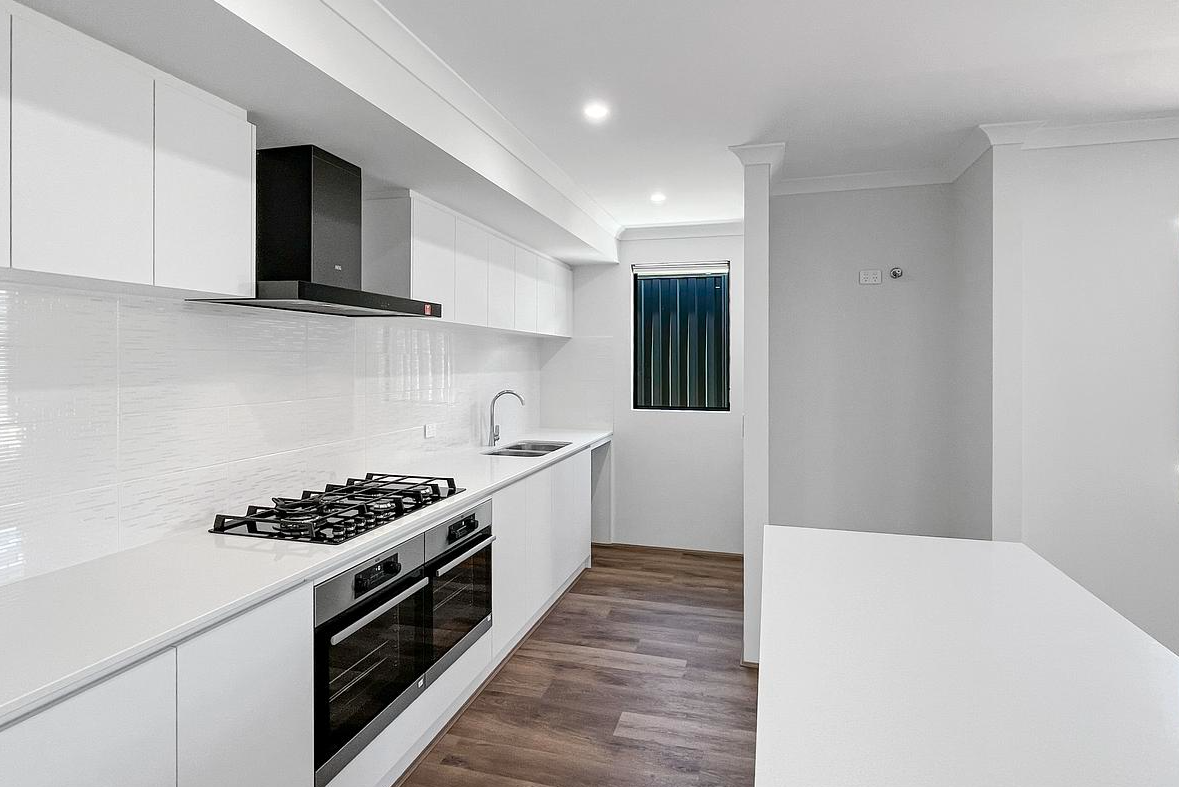 • Modern kitchen with gas cooktop, electric oven and ample storage