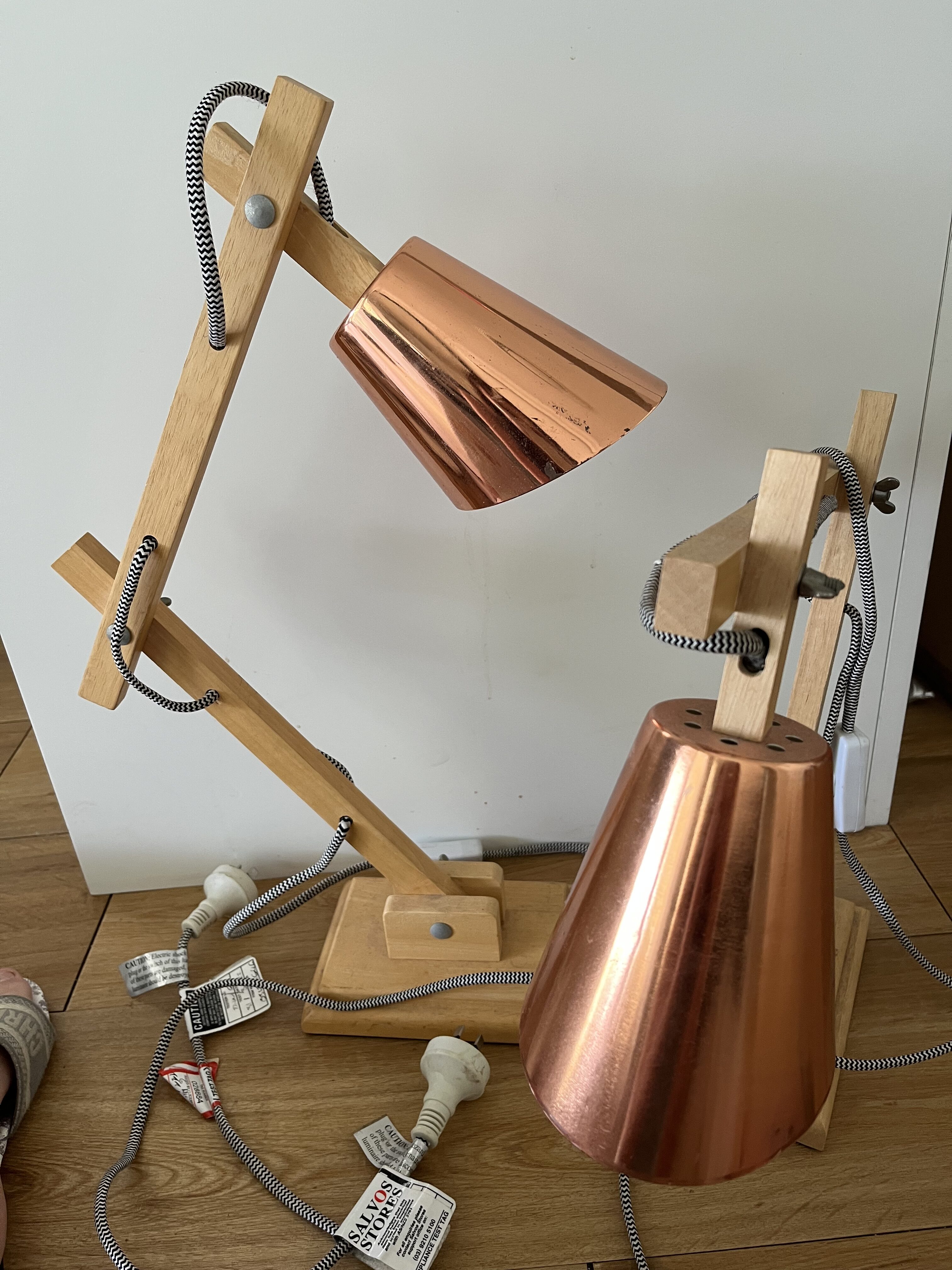 Wood and Copper Bedside lamps